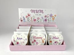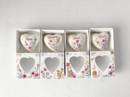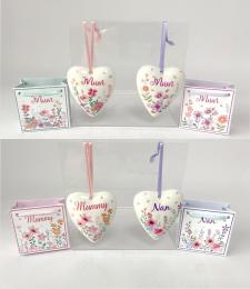 MUM PORCELAIN HEART ORNAMENT IN GIFT BAG 4 ASST