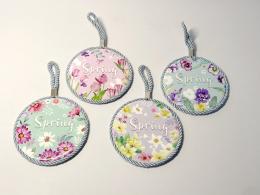 SPRING PORCELAIN TRIVET WITH ROPE 4 ASST