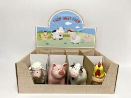 PORCELAIN FARM ANIMAL MONEY BANK 4 ASST